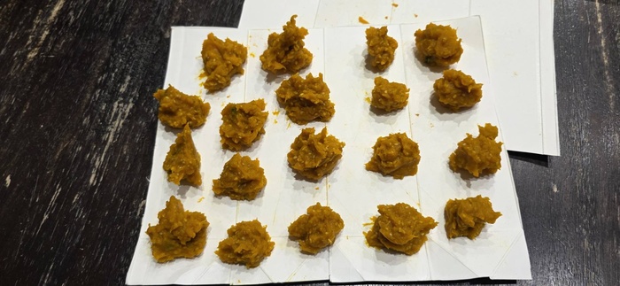 お団子状に丸めオーブンで焼きます。