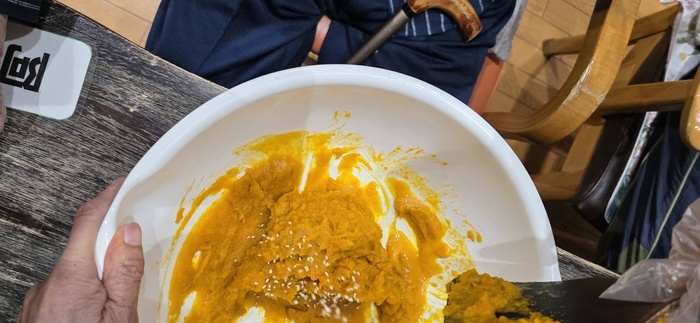 マッシュした、かぼちゃにその他の材料を混ぜ合わせます。