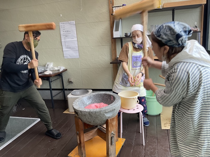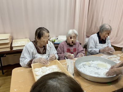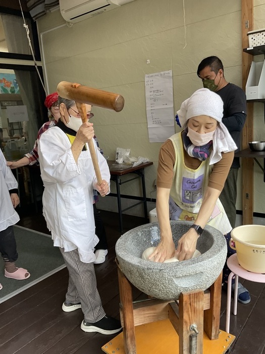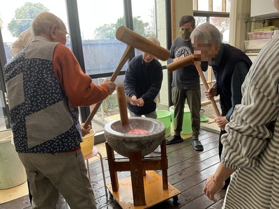利用者様もスタッフも、みんなで25キロのお餅をつきました。