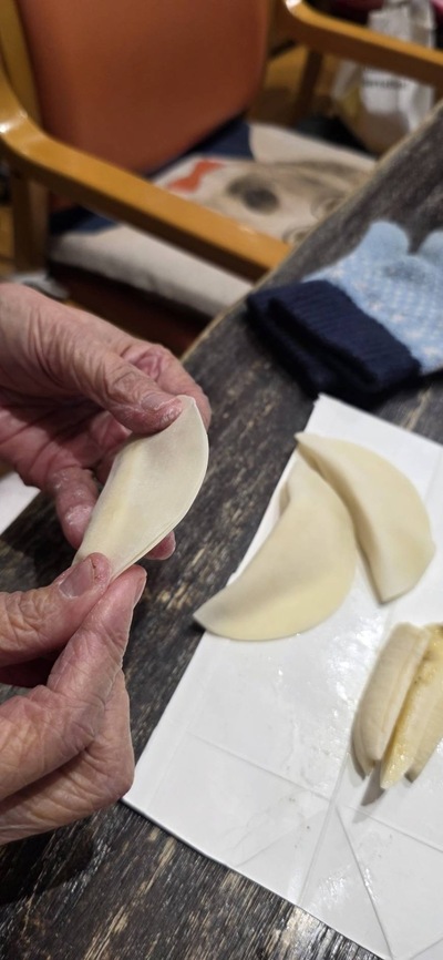 今月のおやつレクリエーションは【バナナの揚げ餃子】
