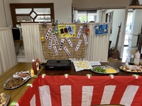 8月28日夏まつりを行いました。出店をイメージしたビュッフェスタイルにしました。 食事後は、輪投...
